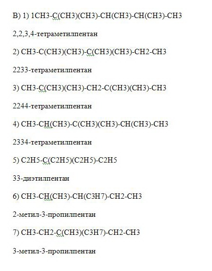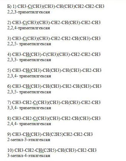Структурные фотрмулы ВСЕХ изомерных алканов состава C9H20 в которых главная цепь состоит из: a) 7 атомов углерода б) из 6 атомов углерода в) из 5 атомов углерода. Назовите вещества.