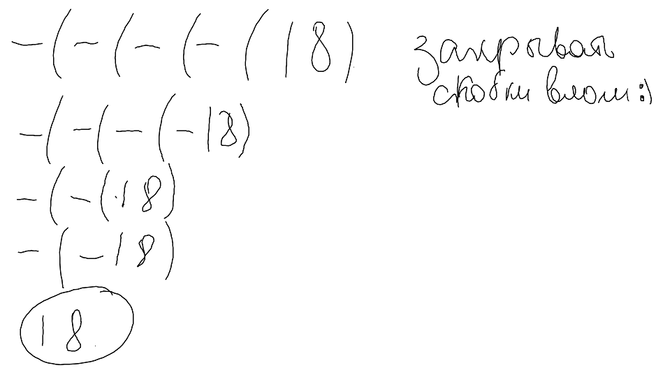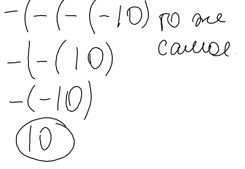 если четное кол- во минусов то получается положительное число, а если нечестно кол- во минусов то получается отрицательное число