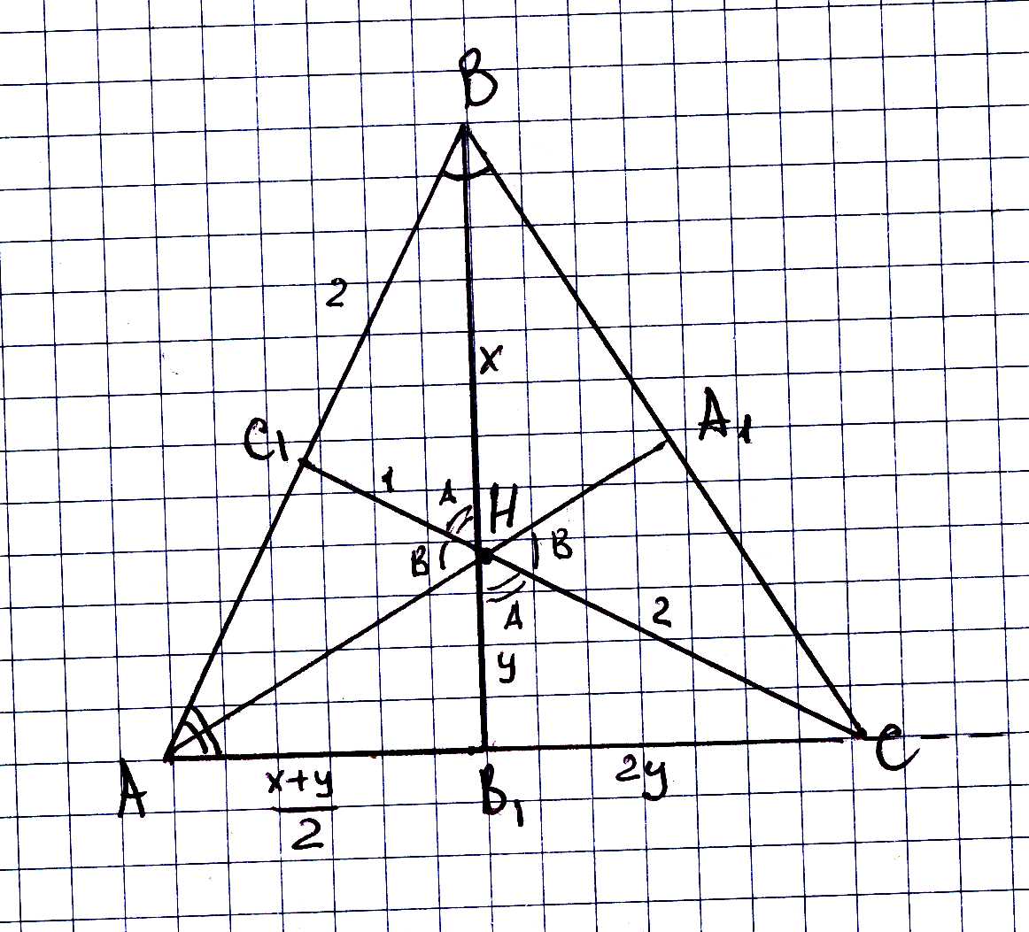 Высоты АА1, ВВ1, СС1 остроугольного треугольника АВС пересекаются в точке Н, так что С1Н/НС=1/2, tgA=2. Найдите tgB.