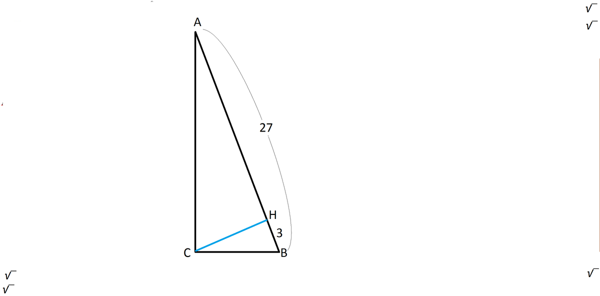 Срочно!!! Найдите катет прямоугольного треугольника, если его гипотенуза равна 27 см. а проекция катета на гипотенузу 3 см. с объяснением.