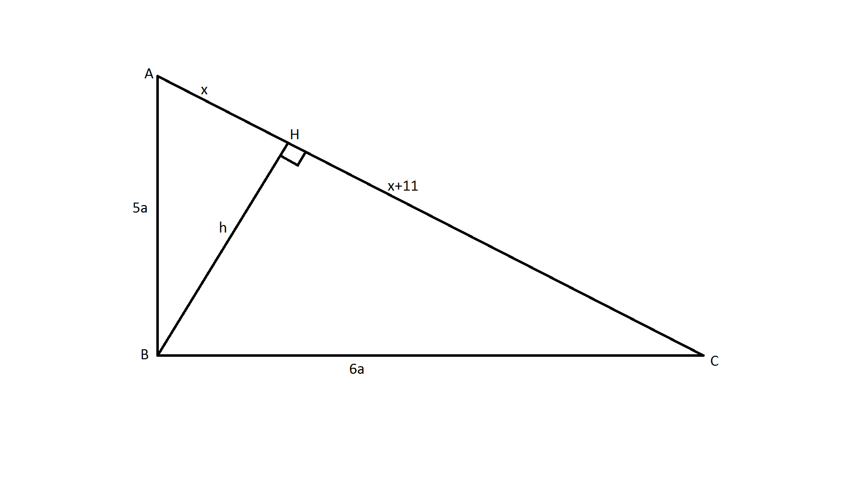 1. Обозначим отрезок АН за х, тогда НС=х+11