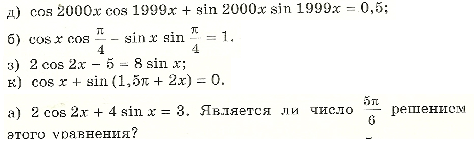 д) cos(2000x-1999x)=0,5