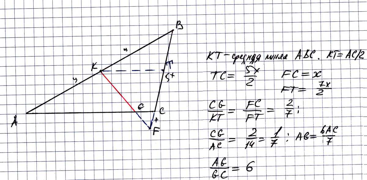 => KT = 7*GC/2; AC = 7*GC; AG = 6*GC;