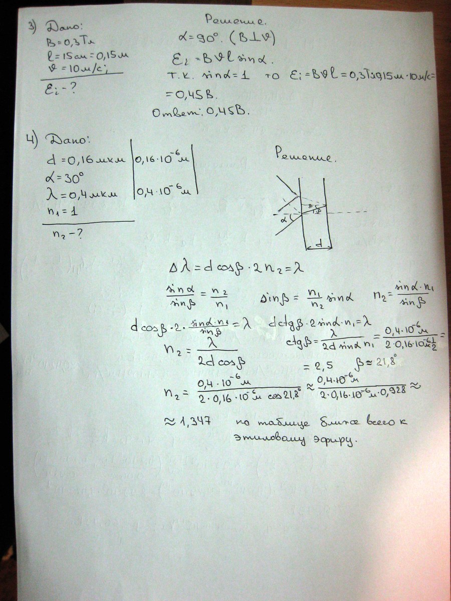 на плёнку толщиной 0,16 мкм.под углом 30 град.падает белый свет .определить показатель преломления плёнки,если в проходящем свете плёнка покажется фиолетовой.Длина волны фиолет лучей 0,4 мкм.из какого вещества пленка?
