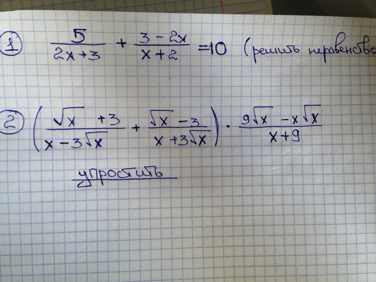 1)5/(2х+3)+(3-3х)/(х+2)=10 *(2х+3)(х+2) умножаем на общий множитель