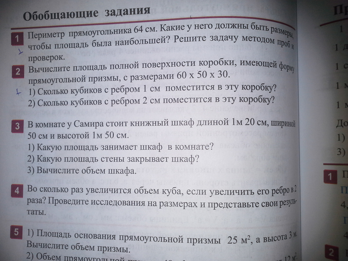 Объем кубика с ребром 2 см= 2*2*2=8 см3