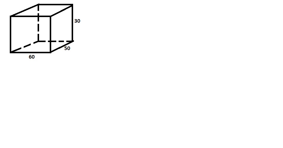 Площадь поверхности :две 60*30+ две 50*30+две 60*50=две (60*30+50*30+60*50)=две (1800+1500+3000)=две 6300=12600 см2