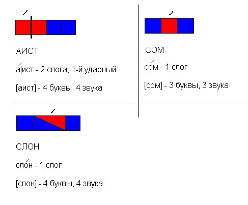 звуковые схемы слов: "аист", "слон", "сом" - в приложении