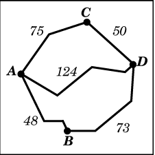 схема дорог и расстояние (в км) между пунктами по дорогам.