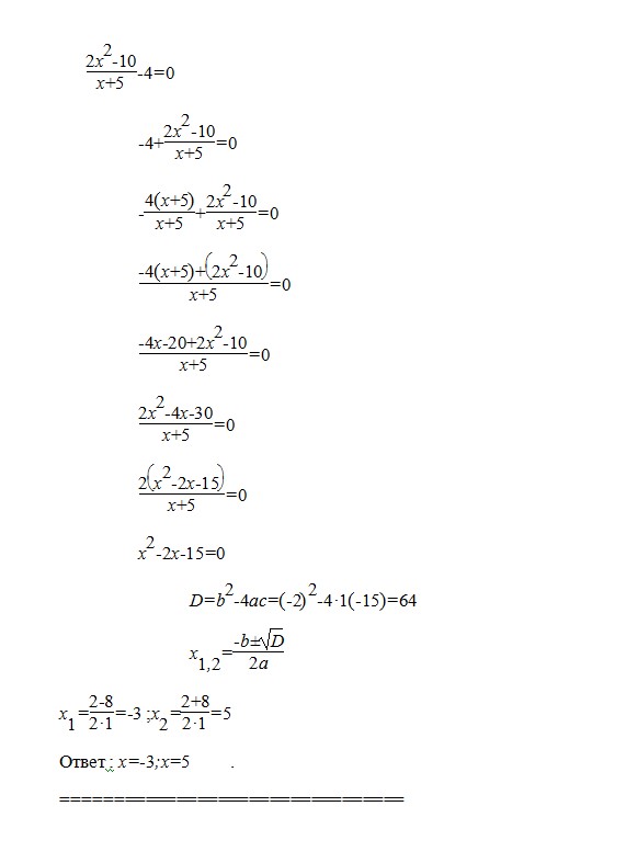 решите уравнение 2х в квадрате - 10/ х+5-4=0