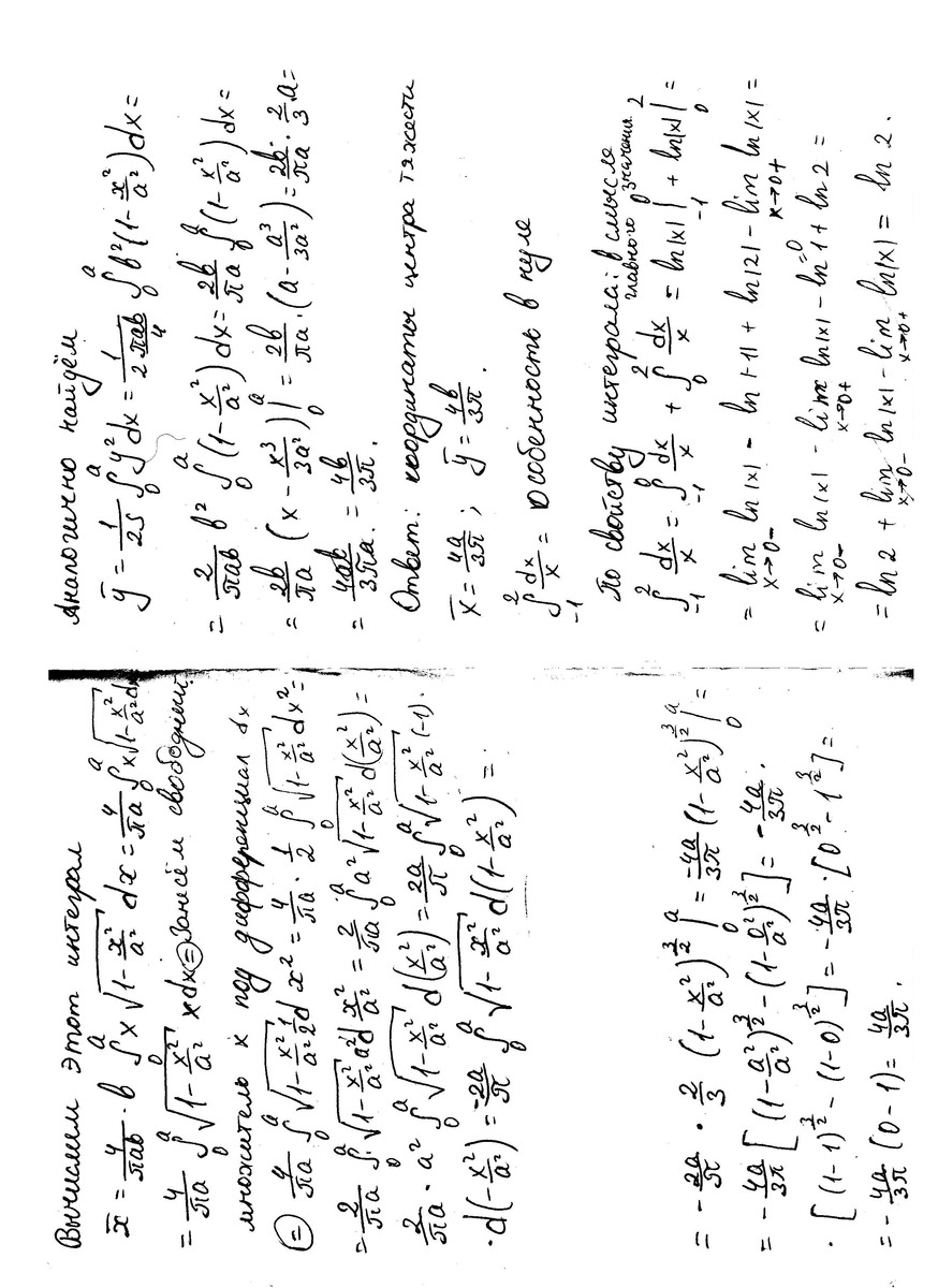 Попробую кое-что написать. Здесь и про интегралы и про центр тяжести. В третьем интеграле точка разрыва в нуле первого рода. То есть по определению интеграла Лебега интеграл не возьмется. Есть только в смысле главного значения. Вообще-то все три интеграла расходятся. Так как особенность в нуле имеет порядок равный и выше единицы. Что показано в первом и втором примерах. Можете посмотреть.