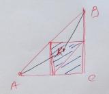 Зная, что у равнобедренного прямоугольного треугольника катеты равны, пусть AC = BC = x, тогда сторона квадрата равна х/2.