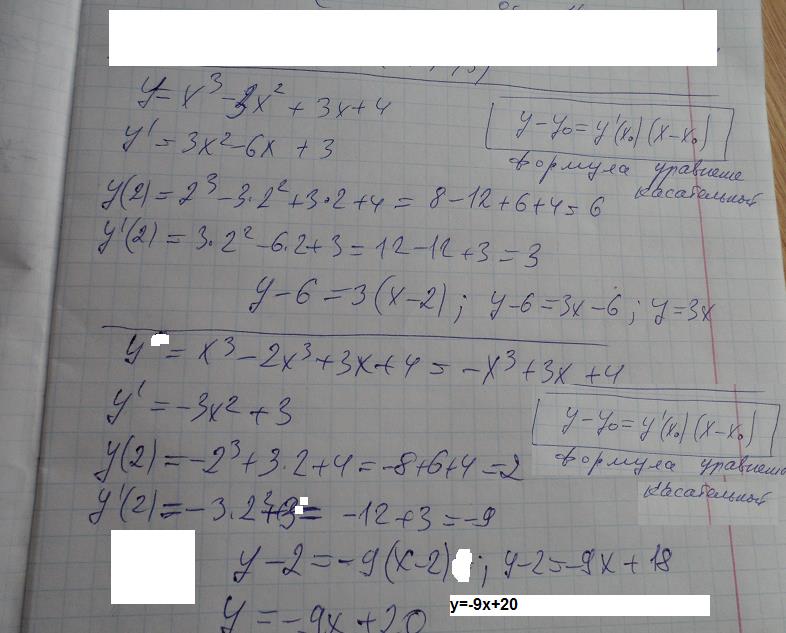 составьте ур-ие касательной к графику функции y =x3 -2x3 +3x +4 в точе с абциссой x=2