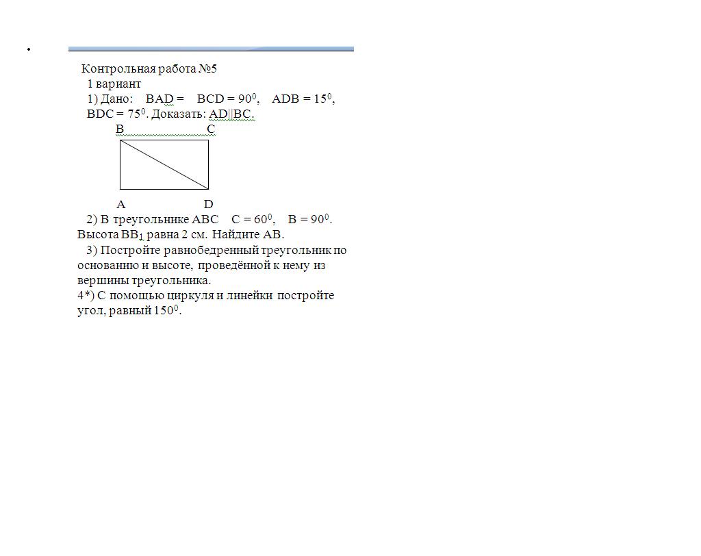 угол А=30 градусов, ВВ1 лежит против угла 30 градусов, АВ=2*ВВ1=4 у тя ошибка походу 900 градусов чтоли не бывает я принял как за 90