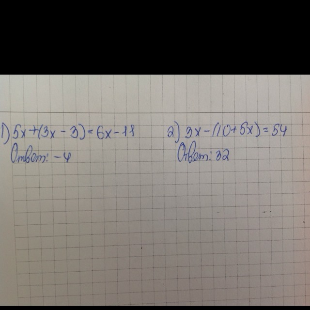 3х-(10+5х)=54; 3х-10-5х=54; -2х=54+10; х=-32
