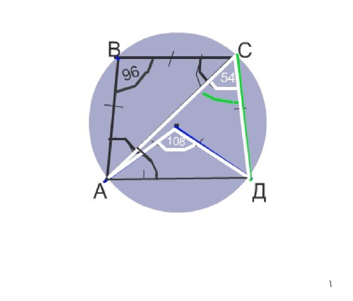 трапеция ABCD вписана в окружность причем прямая АС делит угол А пополам. найдите угол АВС если хорда AD стягивает дугу в 108 градусов.