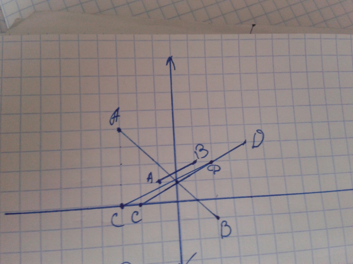 Найдите координаты точки пересечения отрезков АВ и СD если: 1) А (-3;4), В (2;-1), С (-2;0) , D (4;3) ; 2) А (-1;1), В (1;2) ,С (-3;0), D (2;1).