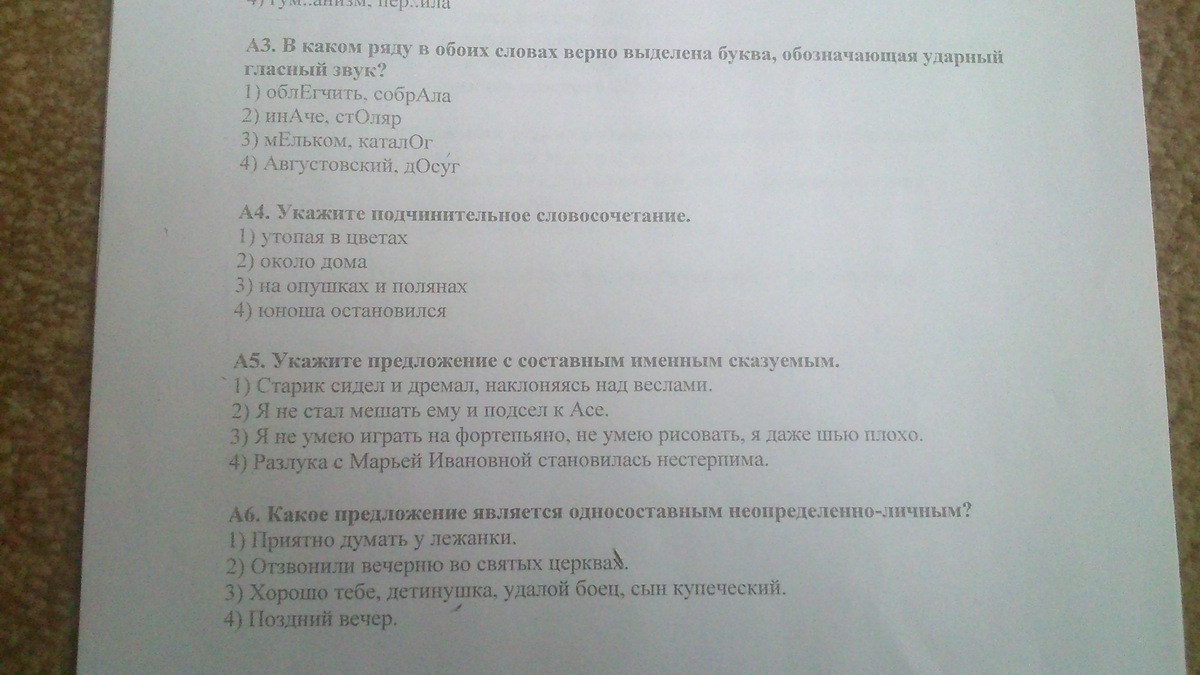 А1-3,А2-2,А3-4,А4-не знаю,А5-3,А6-4.
