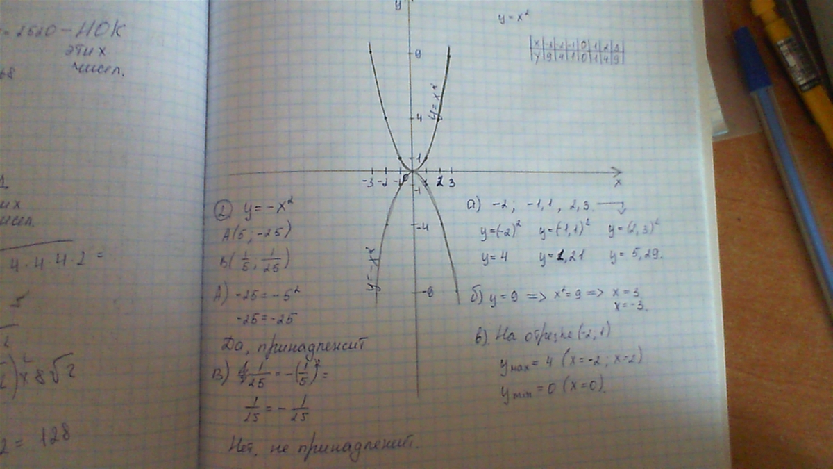2.Пренадлежат ли графику функции y=-х во 2 степени точки А(5;-25),В(1/5;1/25)?