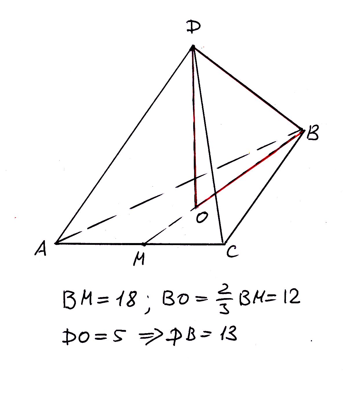 высота правильной пирамиды равна5 одна из медиан основания равна 18. Найти боковое ребро пирамиды? помогите пожалуйста очень срочно
