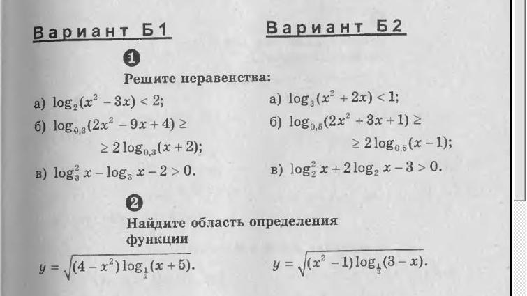 Помогите с Самостоятельной работой,по теме: "Логарифмические неравенства". Очень прошу! Вариант тот,что "Б 2"