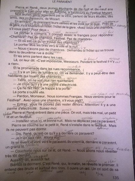 Петр и Рене , два молодых студента от восемнадцати до девятнадцати сели на поезд в Австрию , Зальцбург Моцарт фестиваль .Прибыв на место, они занимают свои чемоданы и на скамье подсудимых. В районе станции всегда есть отель : отель от станции. " У вас есть комната, пожалуйста? Для двух. "Швейцар понял . Он знает достаточно по-французски , чтобы сказать : " Дом ? Нет места . Фестиваль . Нет места " .- А где мы находим комнату? Швейцар поднимает руки в город и ночью.- У нас нет комнаты. Попросите отель, который является вторая улица справа.И друзья покинуть улицы .- Существует немного света здесь . Мы будем просить . Там могут быть люди , которые арендуют номера .Я постучал в дверь . Дверь открывается быстро.- Простите, сэр . Мы Французский . Мы пришли на фестиваль. У вас есть номер , пожалуйста ?- Входите, вы не можете остаться на улице. Предупреждение ! Существует отключения электроэнергии . Следуйте за мной .Петр и Рене введите номер . Мы видим , но очень плохо , небольшая кровать и стул.- Сиди здесь , и спокойной ночи. Но не перемещать экран .Камень лежит на своей кровати , Рене движется в кресло . Но они не могут спать .- Эй, Рене , что там был за этого экрана ?- Я не знаю. Увидите !Они встают и идут на экран. Они видят за экраном , большая кровать .- Мы лежим на кровати , сказал Рене . - Мы будем просыпаться рано завтра.Вскоре они спят . Это Рене утро просыпается первым . Он слышит звуки и особенно смех. Он открыл один глаз . Крик из его рта . Десятки смеющиеся лица перед ним . Петр и его в окне антикварном магазине .