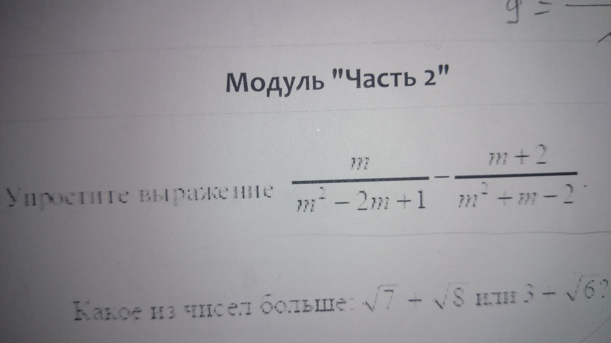 m/(m-1)^2-(m+2) / (m-1)(m+2)=(m(m+2)-(m+2)(m-1)) / (m-1)^2(m+2)=(m^2+2m-(m^2+2m-m-2)) / (m-1)^2 (m+2)=(m+2) / (m-1)^2 (m+2) =1 / (m-1)^2