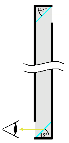 В трубе стооят два зеркала под углом 45 градусов направление к наблюдателю.Поскольку угол падения равен углу отбивания то ми видим изображения