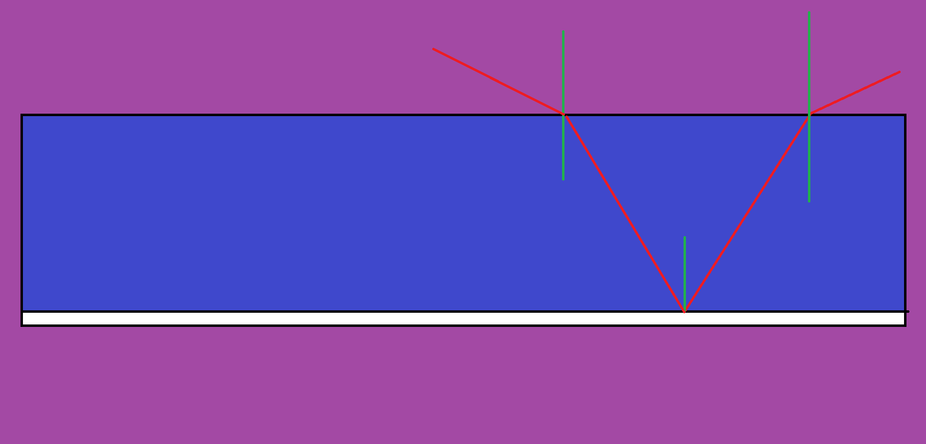 зеленые перпендикуляры, красные лучи, синяя вода, белое зеркало