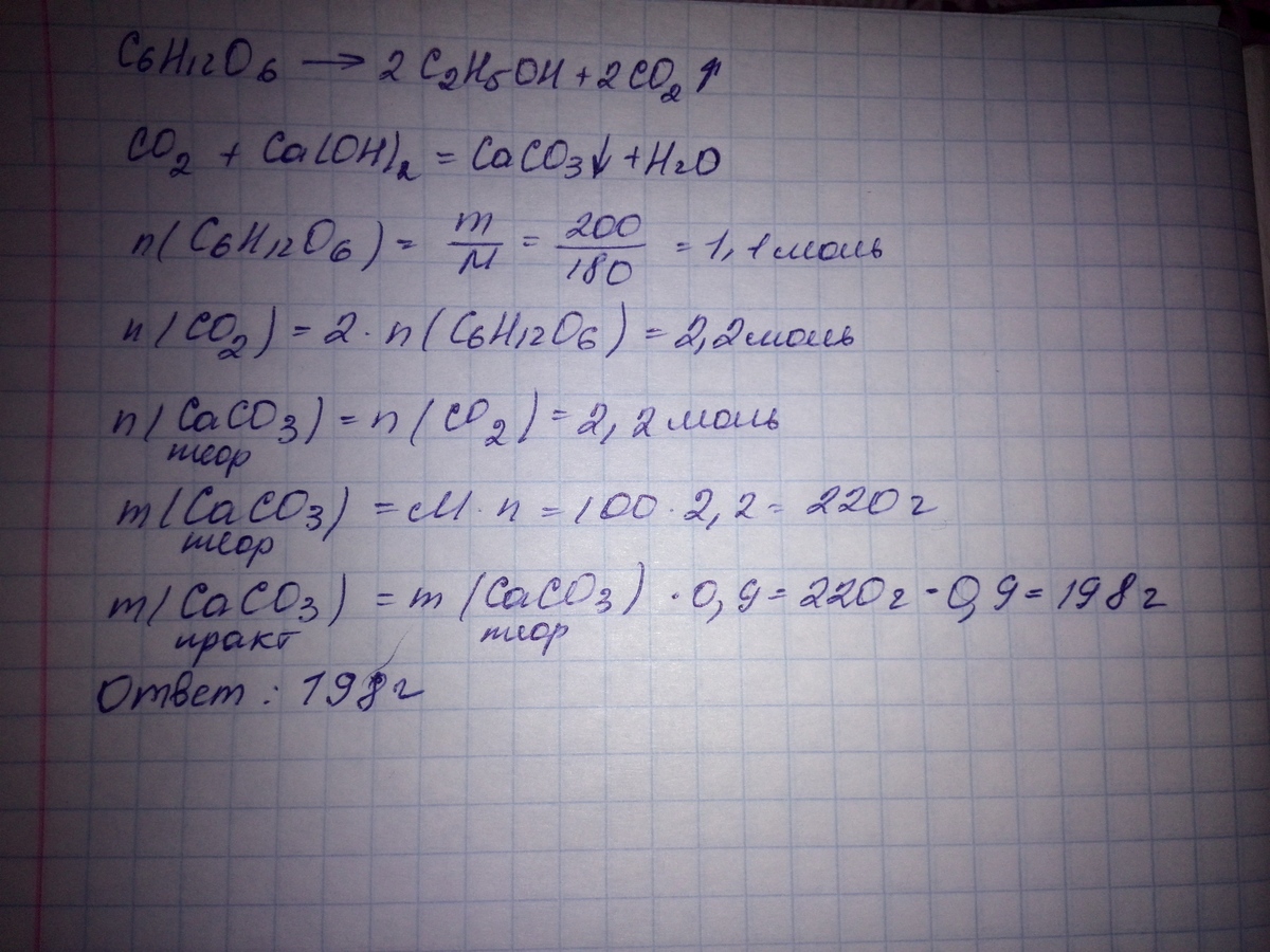 образуется при пропускании газа, полученного при спиртовом брожении глюкозы