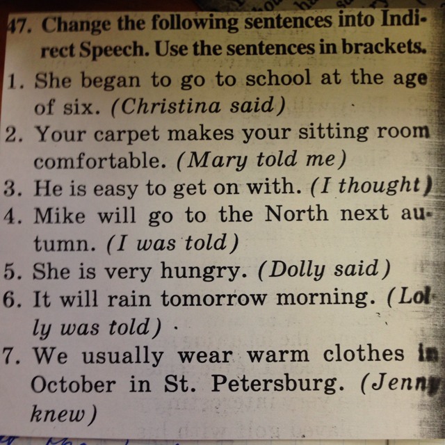 7) Jenny knew that they usually wore warm clothes in October in St. Petersburg