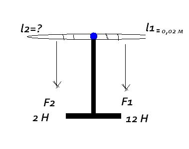 На концах рычага действуют силы 2Н и 12Н.Расстояние от точки опоры до большей силы 2 см.Определите длину рычага,если под действием этих сил,он находится в равновесии.Какой выигрыш в силеСделать чертёж.