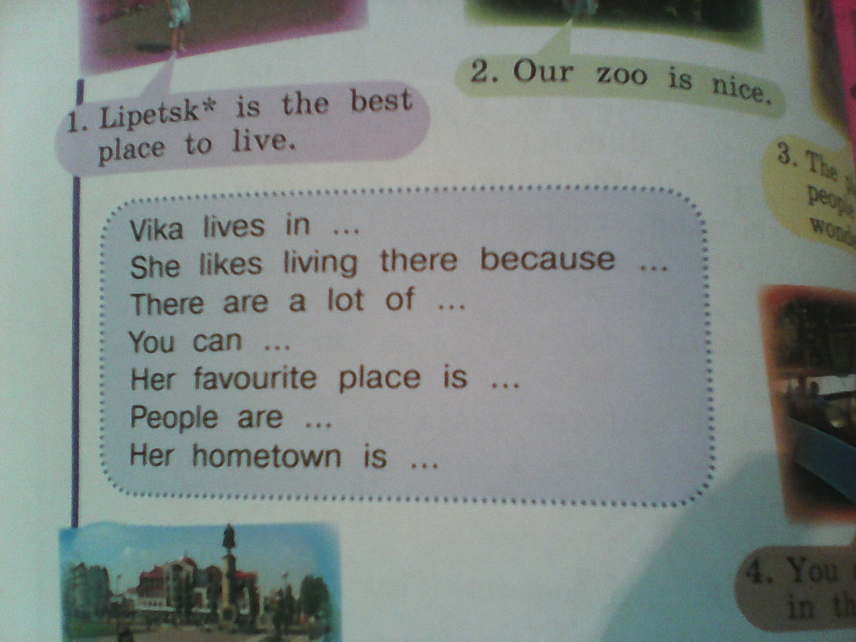 Vika lives in Russia. She like living here because there is so many beautiful cities. There are a lot of ышп