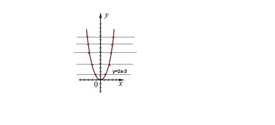 Построить графики функций. В правой части число - это прямая У=2а-3 параллельная оси ОХ и смотреть сколько точек пересечения при этом получается