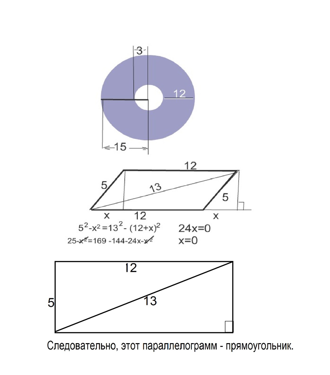 (С формулой Герона Вы уже знакомы. Можно решить задачу и через нахождение высоты с помощью теоремы Пифагора, но это несколько сложнее и значительно дольше. В итоге получим, что этот параллелограмм - прямоугольник. Его высота - 5, и площадь равна 5*12=60)