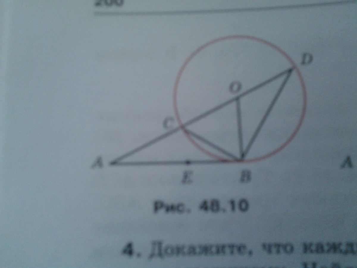на рисунке 48.10 окружность с центром в точке О касается прямой АВ в точке В,2ОВ=АВ, АЕ=АС. Докажите, что треугольник АВС и АDC подобны. Выведите из этого, что точка Е делит отрезок АВ в золотом отношении. Укажите способ деления данного отрезка4 в золотом отношении с помощью циркуля и линейки.
