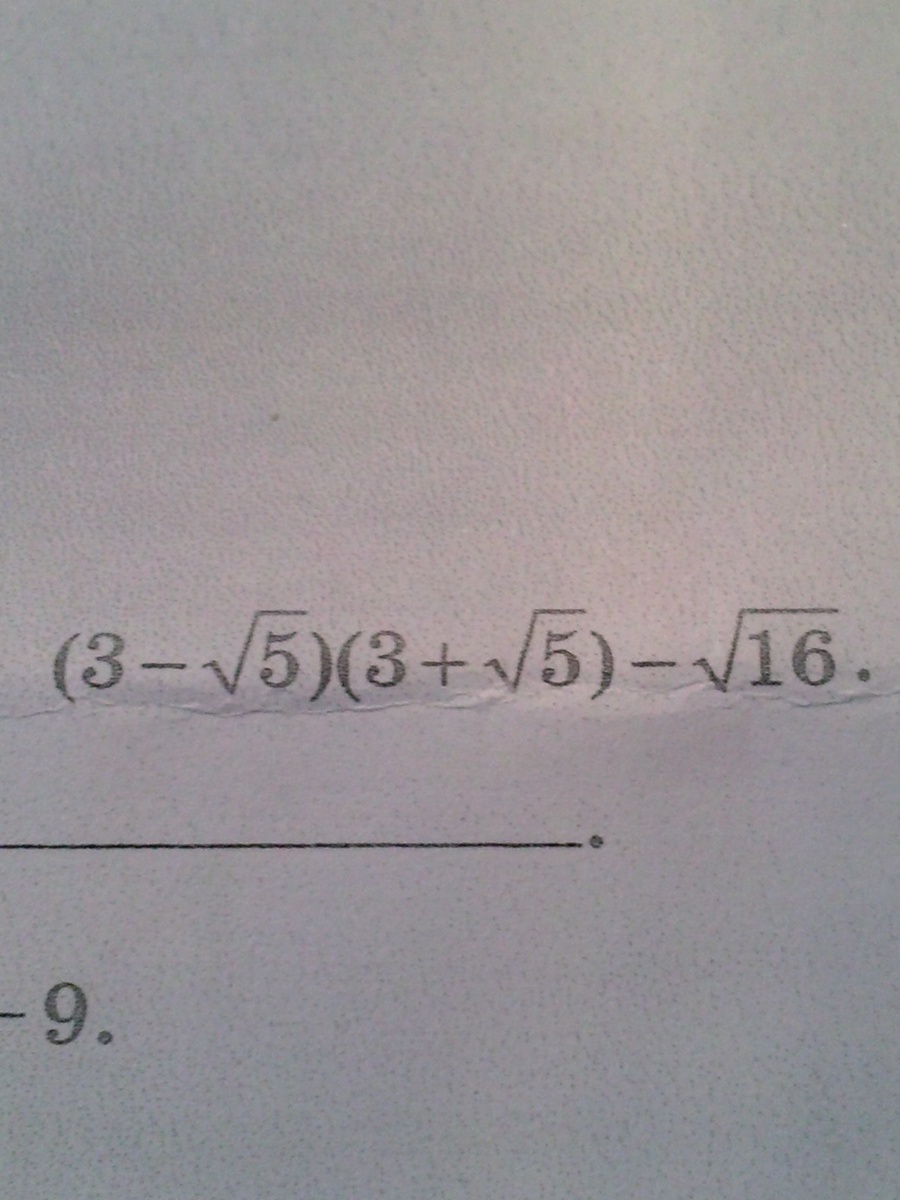 (3 - √5)(3 + √5) - √16 = 9+3√5 - 3√5+5 - 4= 10.