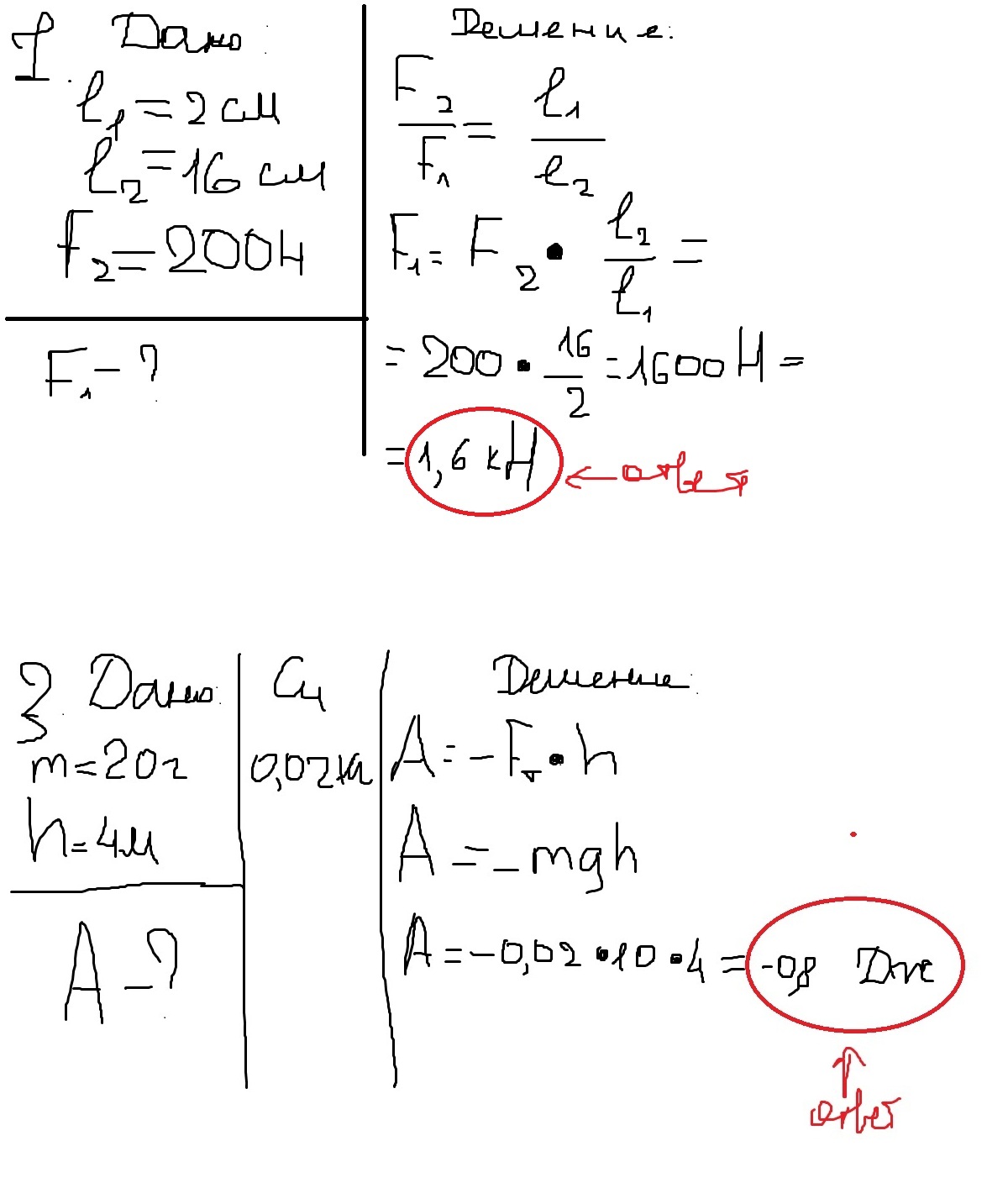 1. При помощи кусачек перекусывают гвоздь. Рука сжимает кусачки с силой 200 Н. Расстояние от оси вращения кусачек до гвоздя равно 2 см, а до точки приложения силы руки — 16 см. Определите силу, действующую на гвоздь.