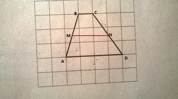 Найдите среднюю линию трапеции изображённой на клетчатой бумаги с размером клетки 1см*1см ответ дайте в сантиметрах