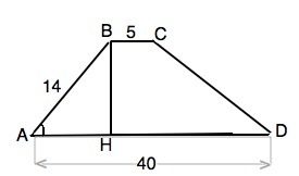 основания трапеции равны 5 и 40, одна из боковых сторон равна 14, а косинус угла между ней и одним из оснований равен 3/5. Найдите площадь трапеции.
