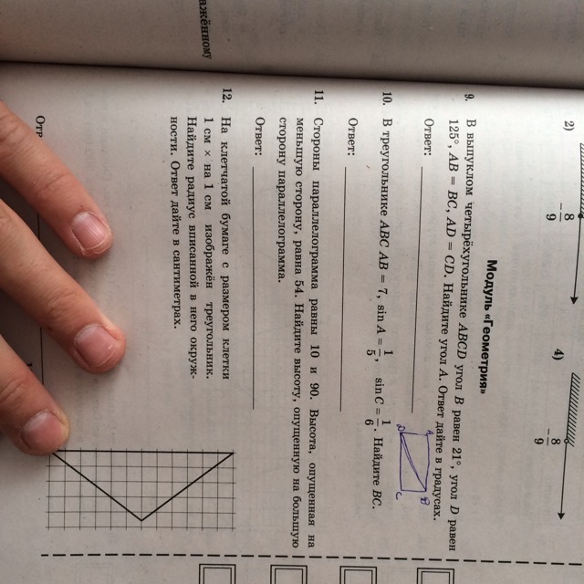 ВК=площадь/АД=540/90=6 -высота на большую сторону