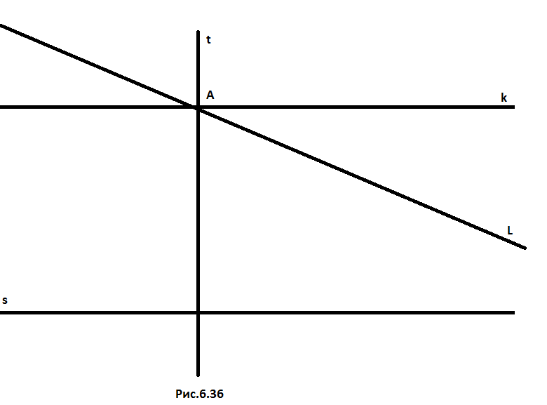 Через точку A,не лежащую на прямой s,проведены прямые k,l и t (рис.6,36).Какая из этих прямых k,l или t перпендикулярна прямой s,a какая-параллельна ей?