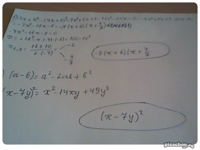 2) (3*x+1)^2-(4*x+3)^2 = -7*x^2+6*x+1-24*x-9 = -7*x^2-18*x+1-9 = -7*x^2-18*x-8 =