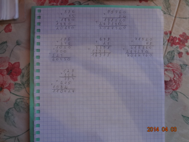 помогите решить примеры в столбик 376*55 95760*32 175*346 679*25 71320*43 129*856 только в столбик плииизззззз