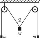 3. Система, изображенная на рисунке, находится в равновесии. Трения нет, M = 30 кг, α = 120°. Чему равна масса каждого из грузов m?