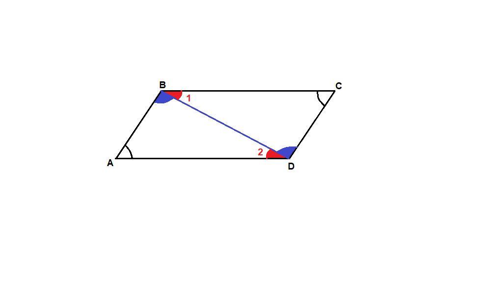 ∠1 = ∠2, а эти углы - накрест лежащие при пересечении прямых ВС и AD секущей BD, значит