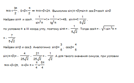 Пусть П<a<3П/2, tga=1/7, 0<b<П/2, tgb=3/4.