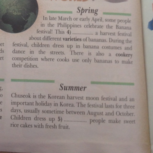 Чусок-корейский урожайный лунный фестиваль и один из важнейших праздников в Корее.Праздник длится 3 дня, между августом и октябрем. Дети наряжаются...