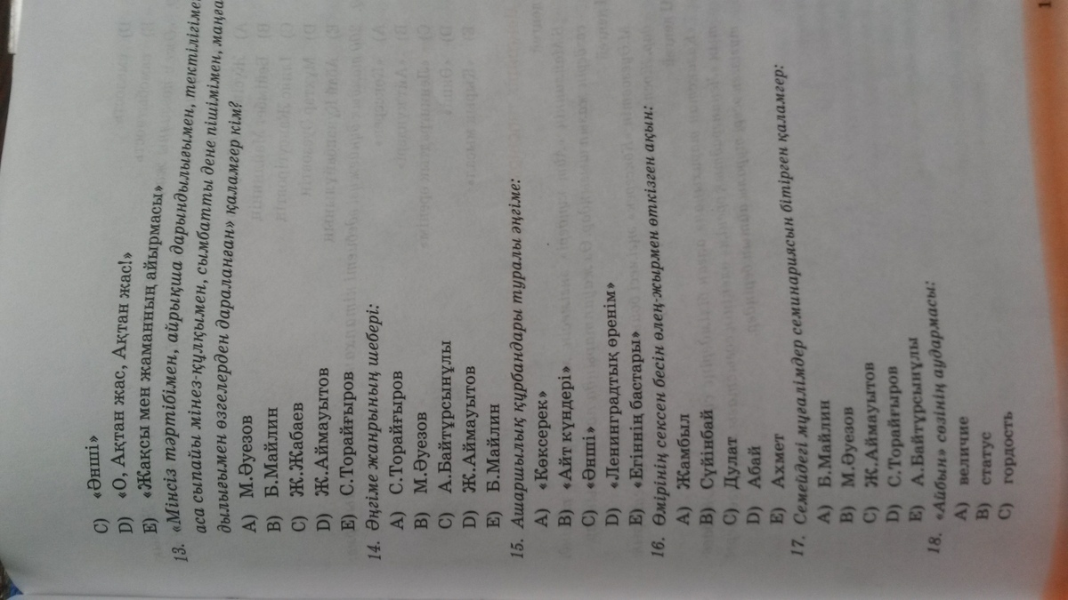 15 Должен быть рассказ Б Майлина"Аштық құрбаны"но здесь 15Д