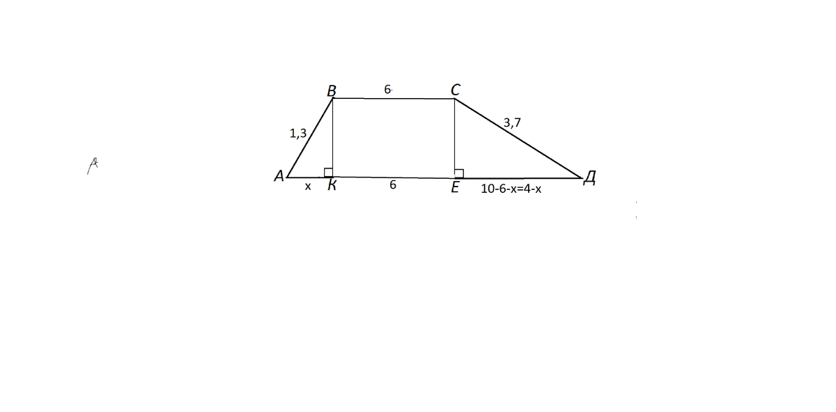 основания трапеции равны 6дм и 10дм , боковые стороны 0,13см и 0,37см.найти площадь.подробное решение!спасибо
